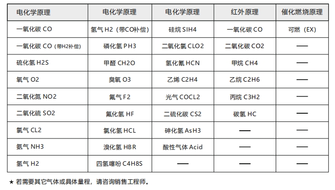 檢測原理:電化學(xué)、紅外、催化燃燒
