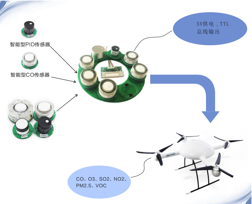 但是由于無人機(jī)的載荷有限,要完成高精度的大氣環(huán)境監(jiān)測(cè)工作需要高精度的傳感器,而傳統(tǒng)傳感器往往在體積、重量等方面的限制可供選擇的不多。因此,需要研究開發(fā)適合無人機(jī)搭載的小型,輕型傳感器,實(shí)現(xiàn)無人機(jī)預(yù)警監(jiān)測(cè)。