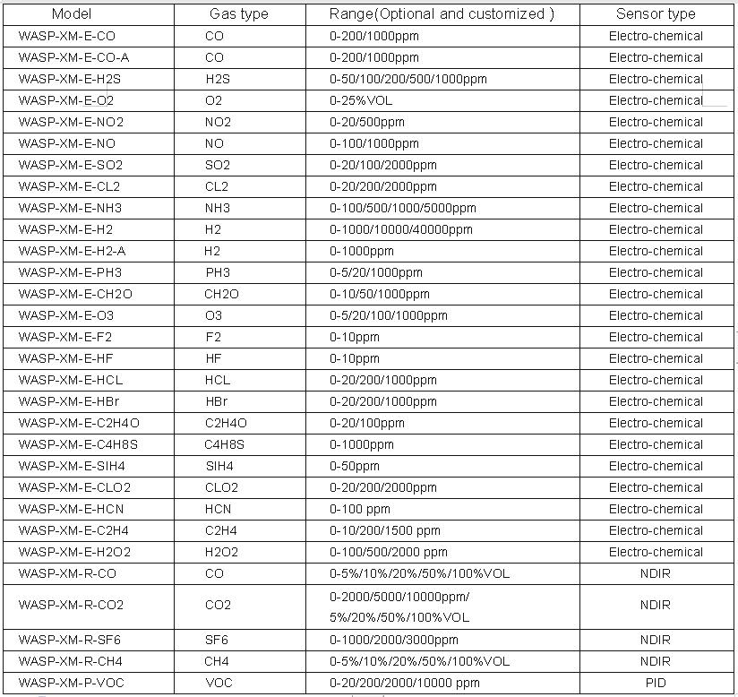 Petroleum, petrochemical, chemical, environmental, paper, paints, coatings, mining, electroplating,textile, coking plants, indoor air quality monitoring, environmental monitoring systems, health monitoring systems.  Can be measured gas species: CH2O, TVOC, CO, H2S, NO2, NO, SO2, CL2, NH3, H2, PH3, O3, F2, HF, HCL, HBR, C2H4O, COCL2, SIH4, CLO2, HCN, C2H4, SF6 and combustible gases.
