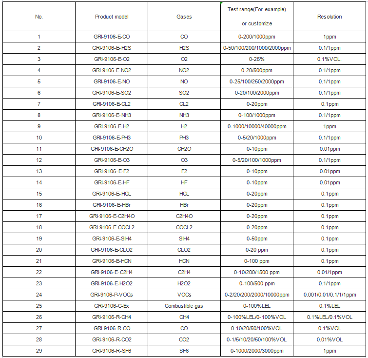 GRI-9106 is a high performance intelligent toxic gas detection alarm which adopted Membrapor sensor from Switzerland, high performance, supply couples of types of gas detection,low power microprocessor to ensure product performance and stability, real-time monitoring of the concentration of toxic gas.